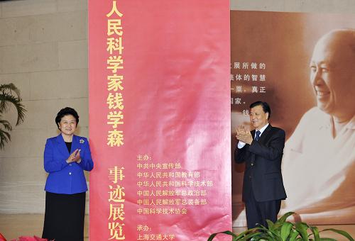 11月3日,“人民科学家钱学森”事迹展览在北京国家博物馆开幕。中共中央政治局委员、中央书记处书记、中宣部部长刘云山,中共中央政治局委员、国务委员刘延东出席开幕式并为展览揭幕。新华社记者 王晔 摄