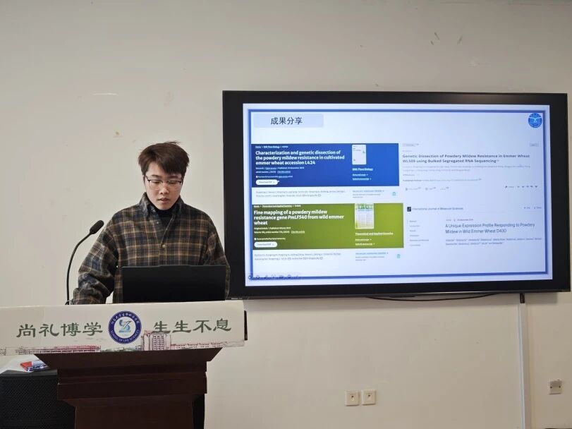 李东明以《脚踏实地:深耕抗病育种,笃行致远科研成长》为题,介绍了科研成果,并从选题、实验设计与操作、数据分析、论文写作和心态调整五方面分享了科研经验。而后从小麦白粉病抗性遗传和候选基因筛选方面做出了细致的讲解。通过培育抗病品种,可减少对化学农药的依赖,进而可保障粮食安全和推动农业绿色可持续发展。
